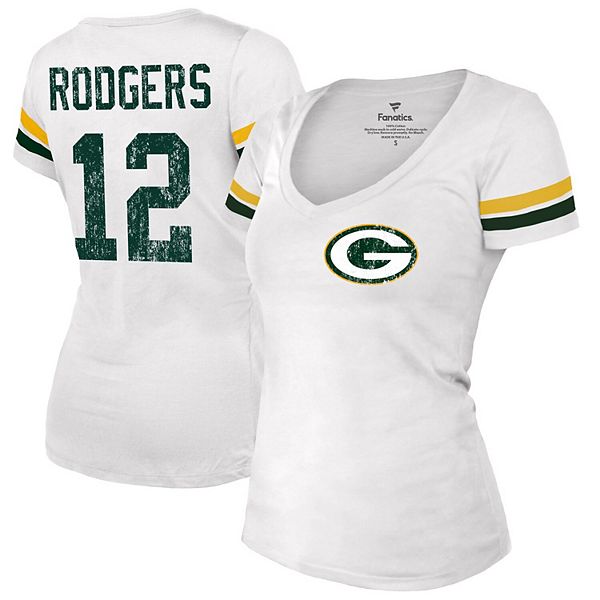 Women S Fanatics Branded Aaron Rodgers White Green Bay Packers Fashion Player Name Number V Neck T Shirt